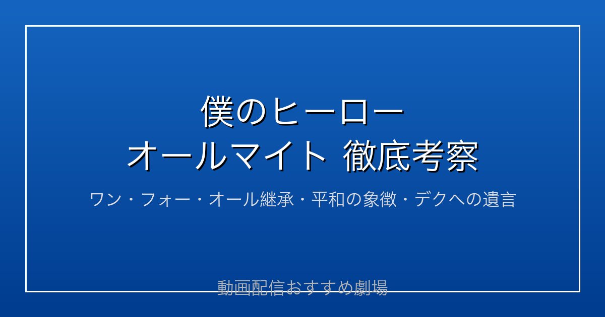 今回はオールマイトの強さ・能力・名場面・名言まで、余すところなく徹底考察していきます!ヒロアカファン必見の内容ですよ!