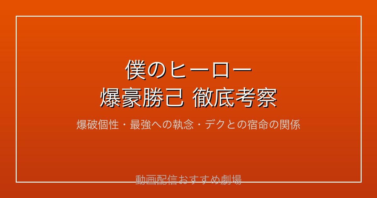 『僕のヒーローアカデミア』(ヒロアカ)に登場する爆豪勝己(ばくごうかつき)は、主人公・緑谷出久(デク)の幼なじみにして最大のライバル。