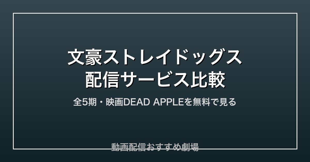 - ✅ 文豪ストレイドッグスはDMM TV・U-NEXT・Amazon Prime Video・Hulu・ABEMAプレミアムで見放題配信中(2026年4月現在)