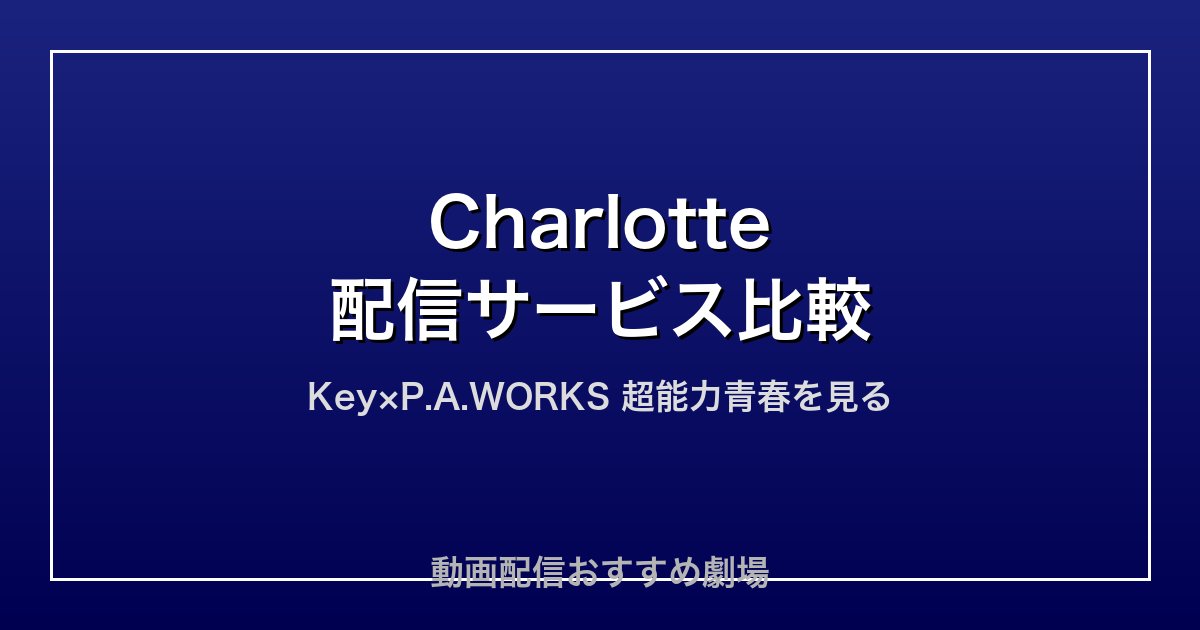 - Charlotte(シャーロット)はDMM TV・U-NEXT・Amazon Prime Video・Hulu・ABEMAプレミアムで見放題配信中(2026年4月現在)