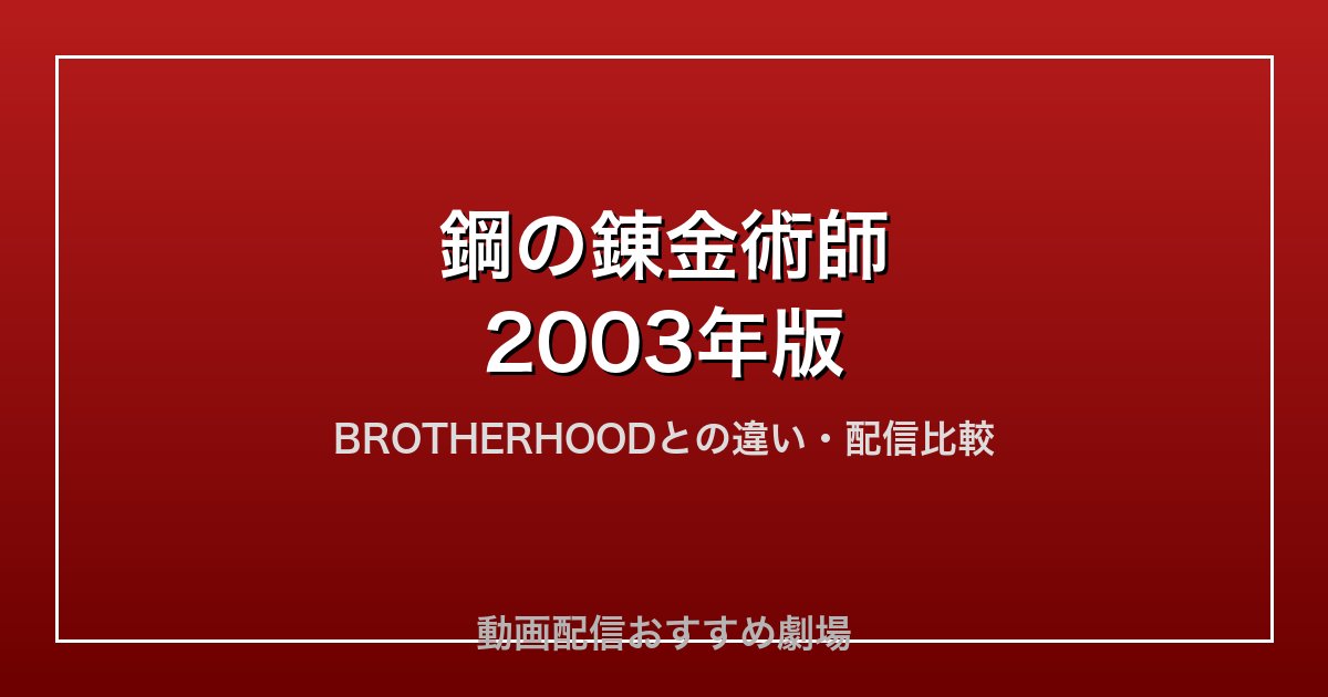 「鋼の錬金術師(2003年版)」はどこで見れる?無料で見る方法とFULLMETAL ALCHEMISTアニメ1期配信サービス比較【2026年最新】