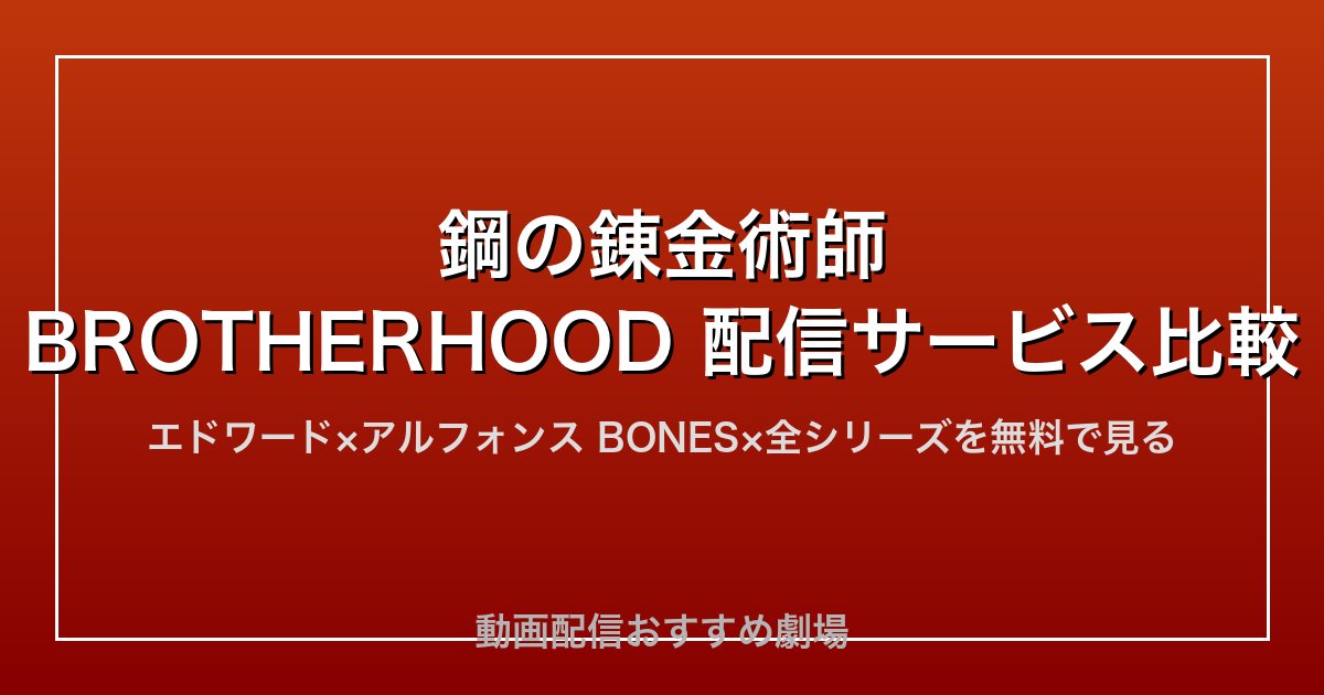 本記事では、2003年版・BROTHERHOOD・劇場版を含む全シリーズが、2026年現在どのVODサービスで見られるかを徹底比較します。無料で観る方法や各サービスの特徴も詳しく解説しますので、ぜひ参考にしてください。