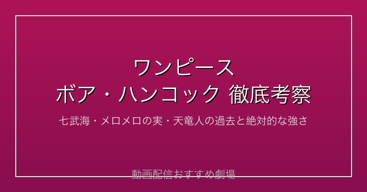 ハンコックが初登場するアマゾン・リリー編から頂上戦争編にかけての物語は、ワンピースの中でも特に感情を揺さぶられるエピソード群です。ぜひ動画配信サービスで実際に視聴してみてください!