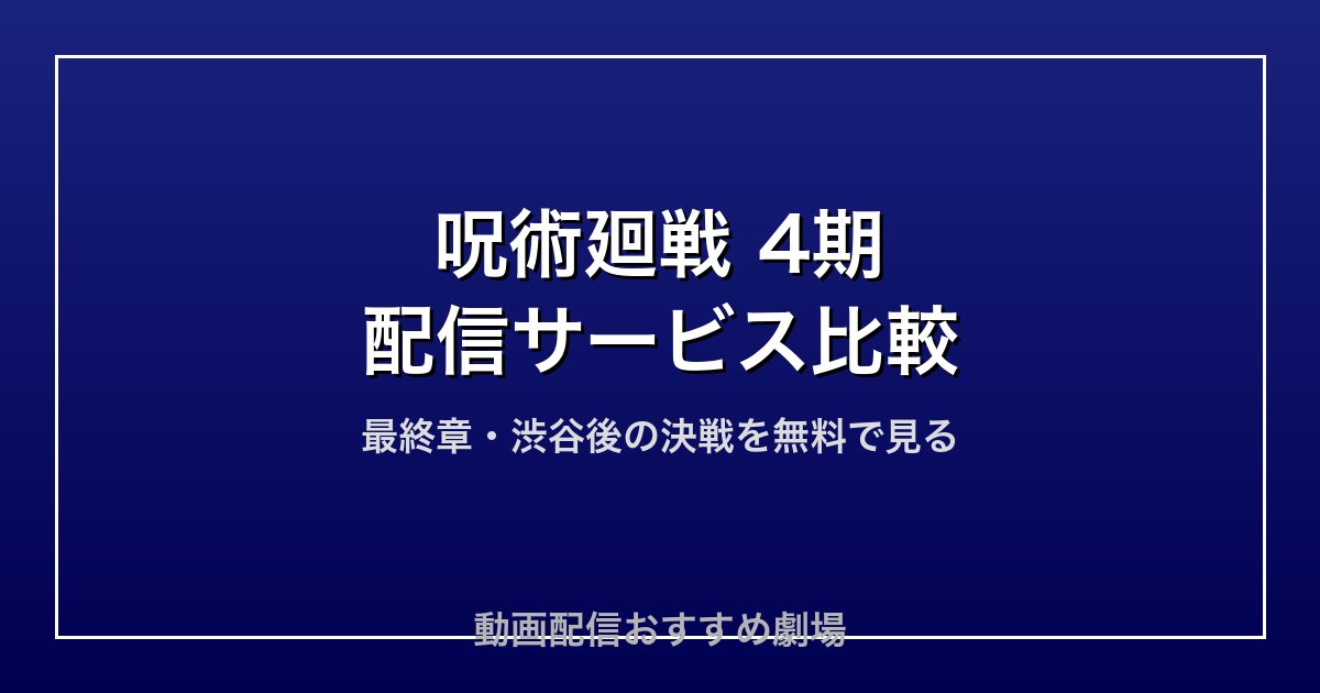 この記事では、呪術廻戦4期(最終章)がどの動画配信サービスで見られるかを徹底比較し、無料で視聴する方法も詳しく解説します。1期から見直したい方向けの視聴順ガイドも掲載しているので、ぜひ最後までチェックしてください!