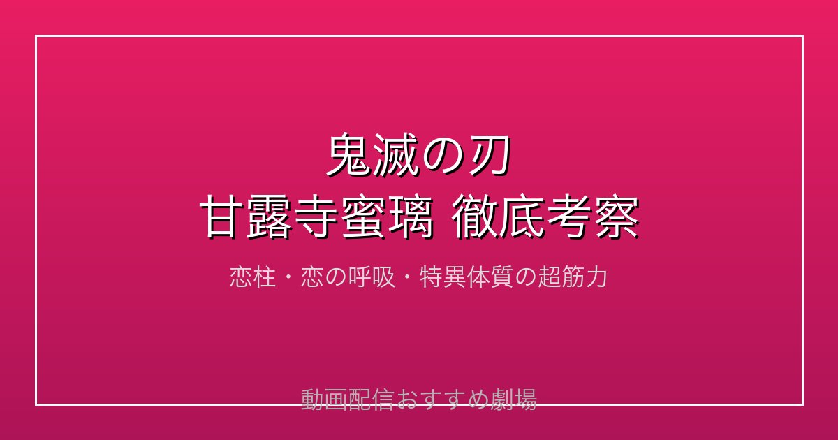 本記事では、甘露寺蜜璃の強さ・技・魅力・名言・伊黒小芭内との関係まで徹底的に考察していきます。DMM TVなら鬼滅の刃シリーズが見放題ですので、蜜璃の活躍シーンを見ながら読むとさらに深く楽しめますよ!