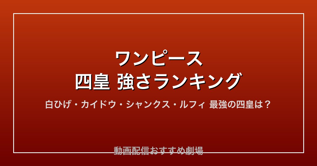 それじゃあ、いよいよ四皇の強さランキングを発表するよ!覇気・悪魔の実・戦績・影響力を総合的に評価してるから注目してね。