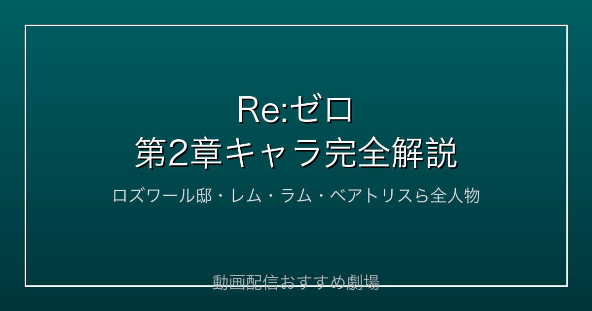 Re:ゼロの第2章「屋敷の一週間」はアニメ第1期の第5話〜第11話に相当します(全25話構成)。DMM TV・U-NEXT・Amazon Prime Videoなど主要VODサービスで見放題配信されています。特にDMM TVは月額550円(税込)とコスパが良く、無料期間中に全話視聴することも可能です。