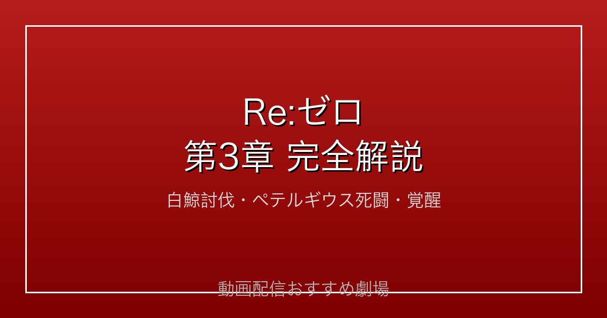 本記事では、Re:ゼロ第3章「Truth of Zero」のあらすじ、主要キャラクター、白鯨討伐戦・ペテルギウス戦の詳細、スバルの精神的覚醒、配信サービス比較まで完全網羅で解説します。アニメ・原作未読の方にもわかりやすく整理しています。