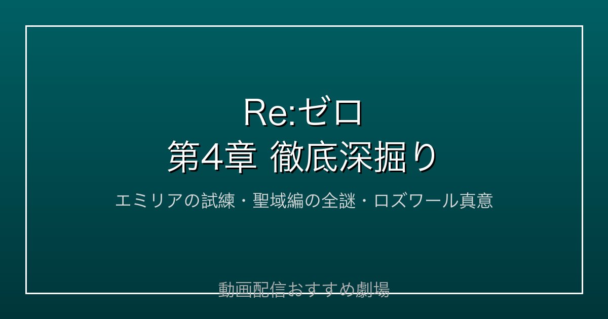 こんにちは、リョウコです。今回はRe:ゼロから始める異世界生活の第4章「永遠の契約」を、あらすじではなく「謎」と「思想」の深掘りで解説していきます。聖域編はシリーズ屈指の難解さを誇る章なので、初見だと「結局何が起きてたの?」となりがちですよね。