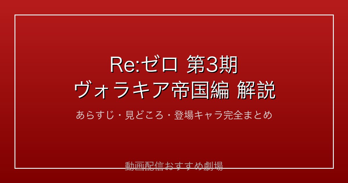 Re:ゼロから始める異世界生活の第3期、通称「ヴォラキア帝国編」は2024年から2025年にかけて放送されたアニメシリーズの最新章です。これまでとは全く異なる舞台・キャラクター・緊張感で、ファンの間でも特に評価が高いシーズンとなっています。
