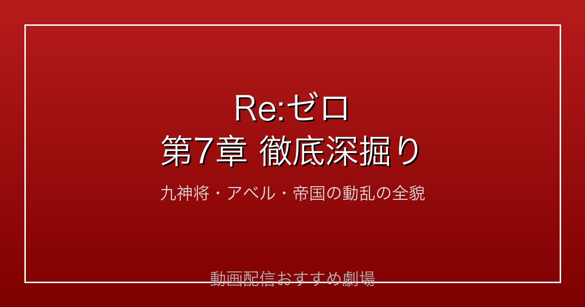 この記事では、Re:ゼロ第7章「ヴォラキア帝国編」の核心を徹底深掘り解説!帝国転移からナツキ・シュバルツ化、九神将の脅威、剣奴孤島ギヌンハイブ編、魔都カオスフレーム編、帝都ルプガナ攻防戦、プリシラ覚醒、スピカの謎まで一気に俯瞰します。あわせて、Re:ゼロを最もお得に視聴できる配信サービス10社を比較。イチオシはコスパ最強の「DMM TV」です。