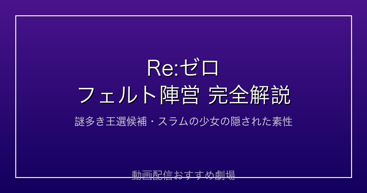 フェルト陣営の今後の展開は、Re:ゼロという作品における最大のミステリーのひとつです。彼女の素性が明かされる日が来た時、ルグニカ王国の歴史と王選の行方が大きく動く——そんな期待を持ちながら視聴を楽しんでいただければと思います。