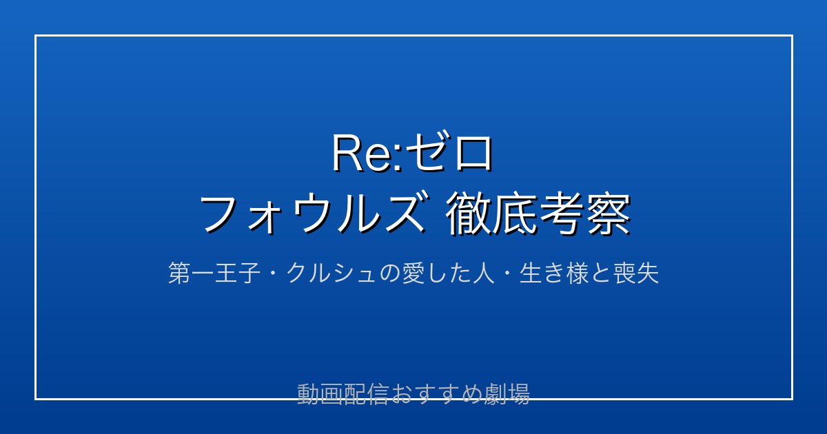 Re:ゼロをまだ見ていない方、また見直したい方はぜひDMM TVの無料トライアルをお試しください。14日間無料で全話視聴が可能です。クルシュの強さの背景に、フォウルズの存在を感じながら見るとまた違った感動があるはずです。