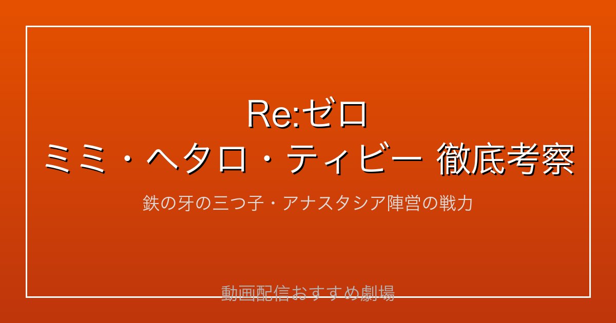 この記事では、Re:ゼロのアナスタシア陣営「鉄の牙」の三つ子(ミミ・ヘタロ・ティビー)について、キャラ設定・戦闘能力・各章での活躍・声優陣まで徹底考察します。第3章「白鯨討伐」での名シーン、第7章「帝国編」での重要な役割もネタバレ込みで解説。Re:ゼロを最大限楽しめる動画配信サービスもまとめてご紹介!