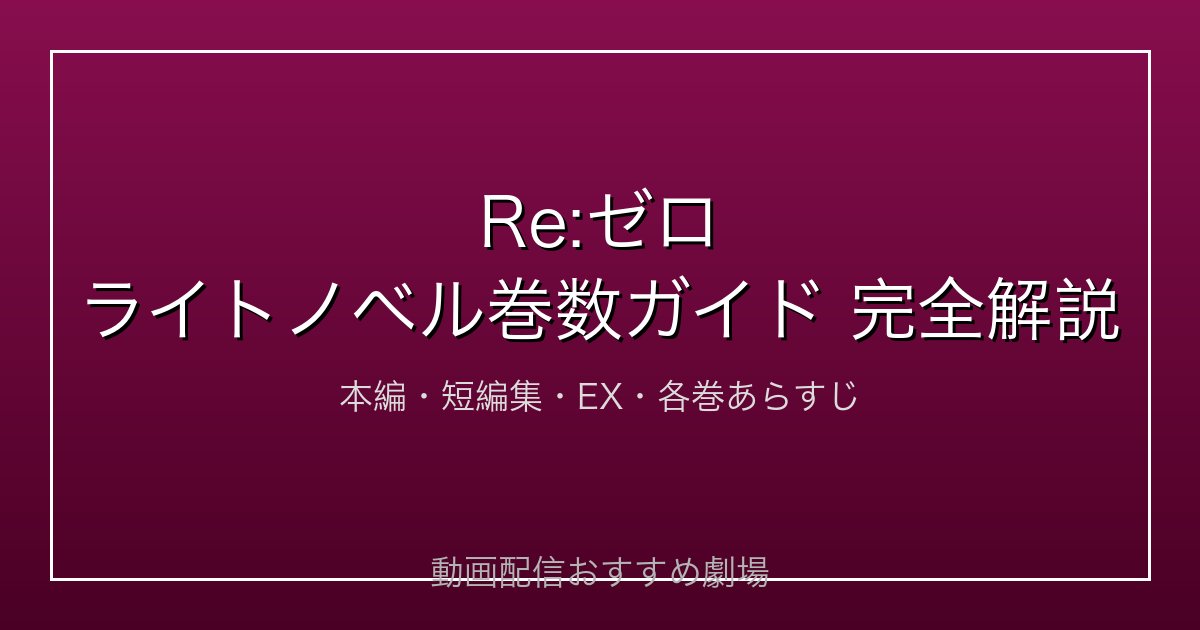 こんにちは、リョウコです!今回は『Re:ゼロから始める異世界生活』のライトノベル巻数ガイドをお届けします。本編35巻+短編集10巻+EX巻まで、シリーズ全体を網羅して解説しますよ!