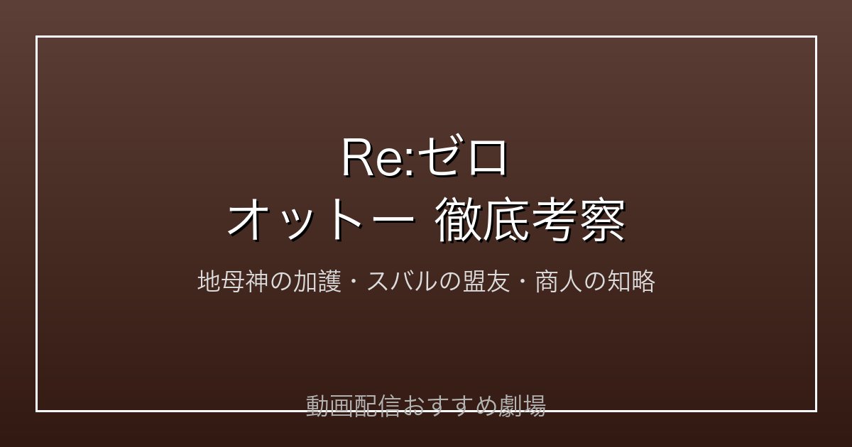 アニメ1期でも登場しますが、本格的に重要キャラとして活躍するのはアニメ2期(Re:ゼロから始める異世界生活 第2期)の「聖域編」からです。1期を見てオットーが気になった方は、ぜひ2期まで続けて視聴することをおすすめします。
