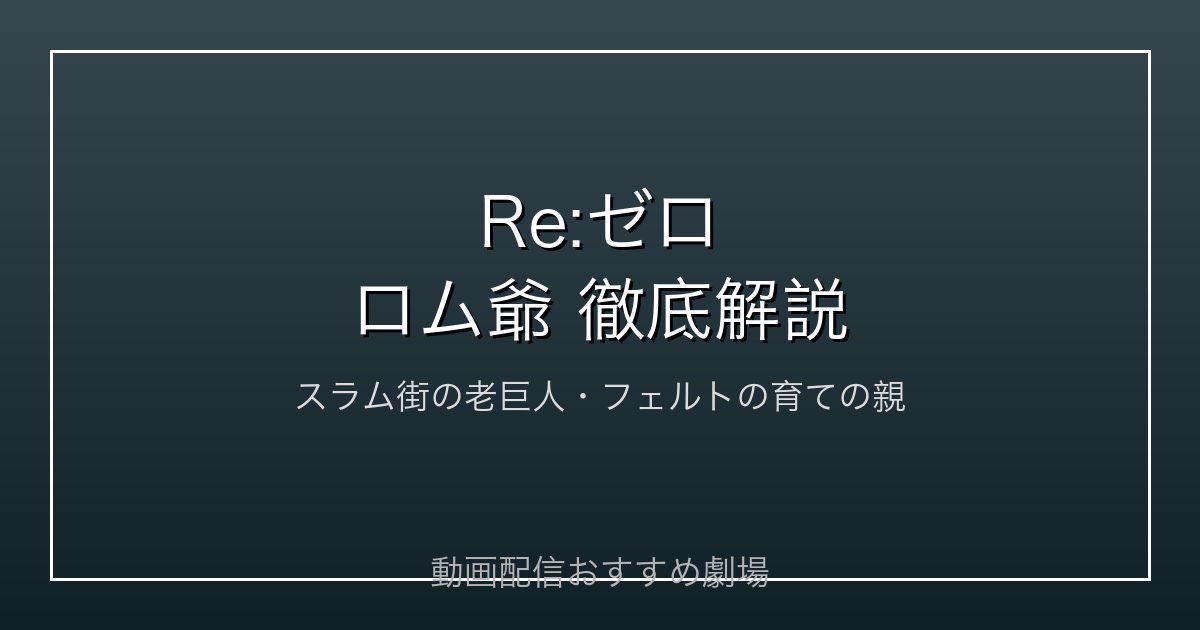 「Re:ゼロから始める異世界生活」の第1章で、スバルが徽章を取り戻すために足を踏み入れた王都ルグニカのスラム街。その奥にひっそりと佇む盗品蔵の主こそが、老巨人ロム爺です。亜人としての長い人生を歩んできた彼は、ただの店主ではなく、フェルトという少女を育てた父代わりの存在でもあります。本記事ではロム爺というキャラクターの過去・人物像・1章での衝撃的な事件・その後のフェルト陣営での役割まで、徹底的に掘り下げて解説します。