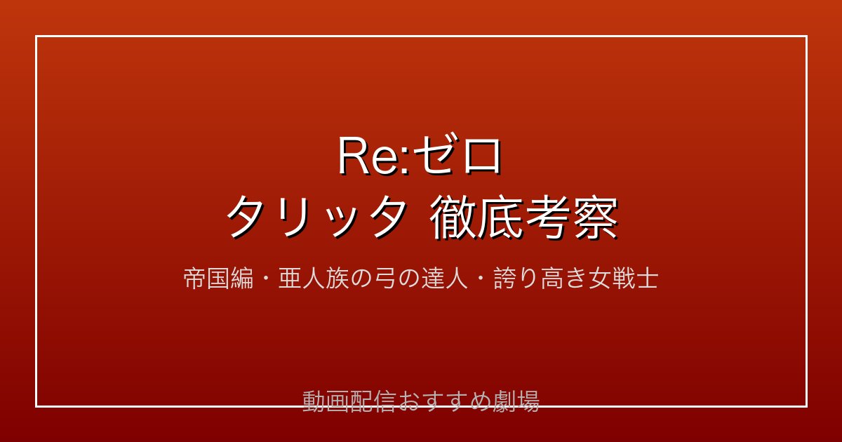 タリッタは「Re:ゼロから始める異世界生活」第3期(ヴォラキア帝国編)において、圧倒的な弓技と揺るぎない誇りで強烈な印象を残す亜人族の女戦士です。