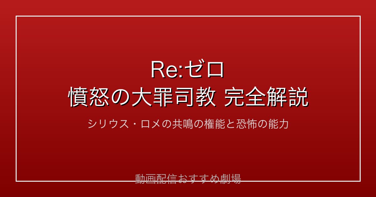 Re:ゼロ起動異世界生活(以下、Re:ゼロ)に登場する「魔女教の大罪司教」たちは、それぞれ唯一無二の「権能」を持つ強力な敵キャラクターです。中でも憤怒の大罪司教「シリウス・ロメ」は、その特異な能力と謎めいた設定から多くのファンを引きつけています。