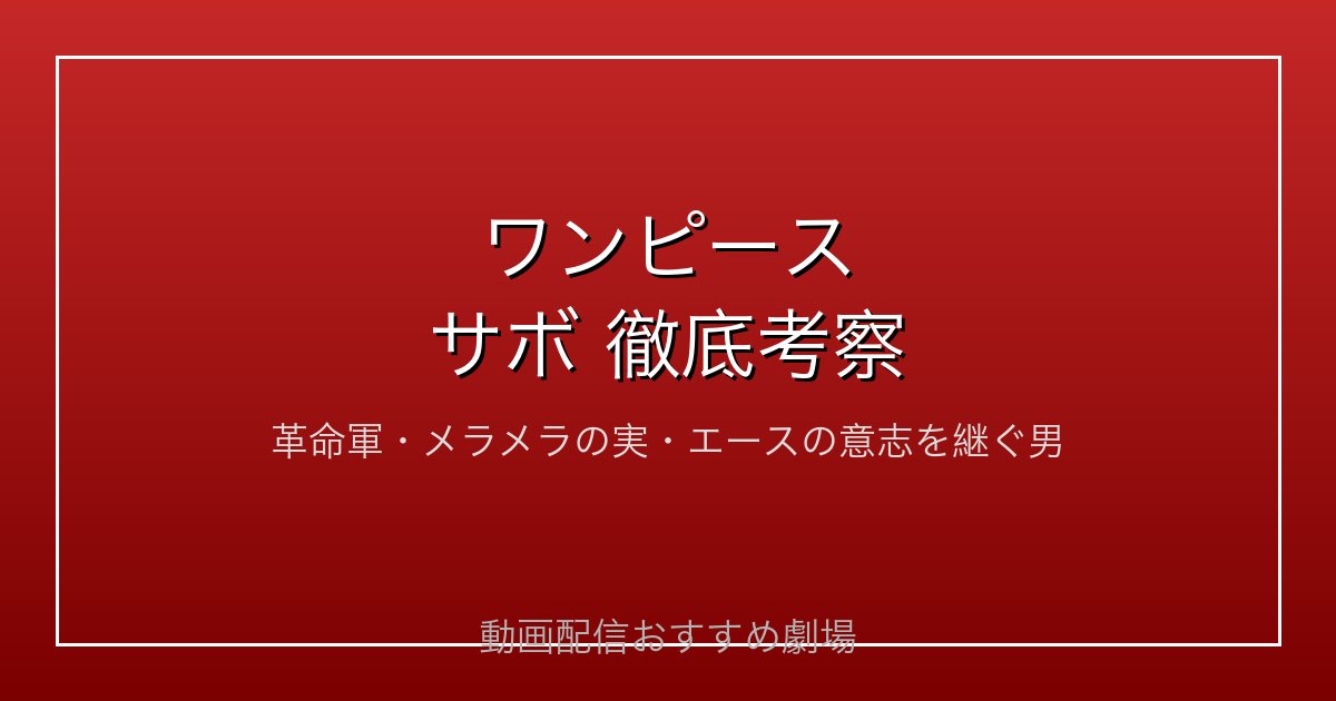 サボは「貴族の家に生まれながら自由を求め、記憶を失い、兄の死を知り、それでも炎の意志を継いで戦い続ける」という重厚な物語を持つキャラクターです。単なる「ルフィの兄」ではなく、独自の信念と圧倒的な実力を持つ革命軍の要。マリージョアの謎も含め、今後のワンピースのストーリーで果たす役割はますます大きくなるはずです。ぜひDMM TVで彼の活躍をチェックしてみてください!