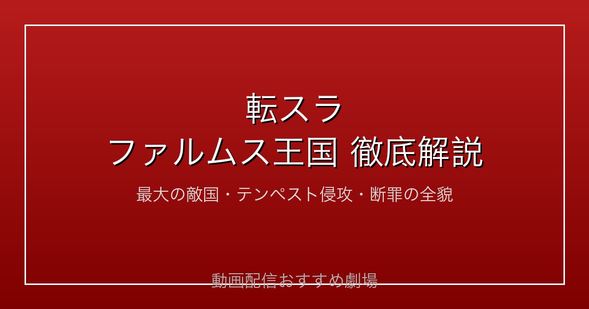 今回は、ファルムス王国とは何者なのか、なぜテンペストを攻めてきたのか、そしてリムルの怒りと断罪がいかに描かれたかを、時系列を追いながら徹底解説します。